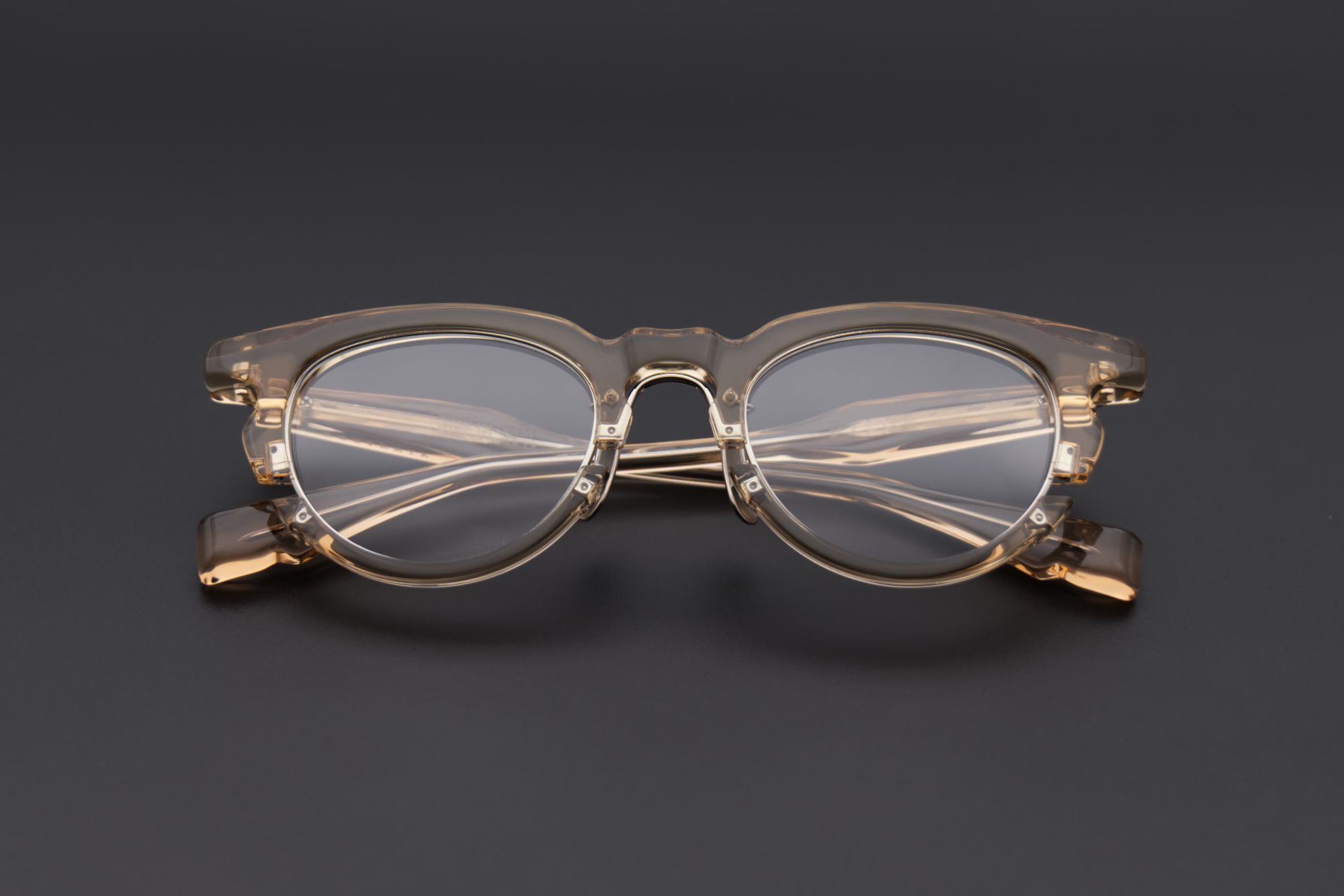 It is a form that can only be realized by combining neat and elegant titanium parts and three-dimensional and heavy acetate parts, literally supporting each other as a combination eyewear without erasing the charm of each other.